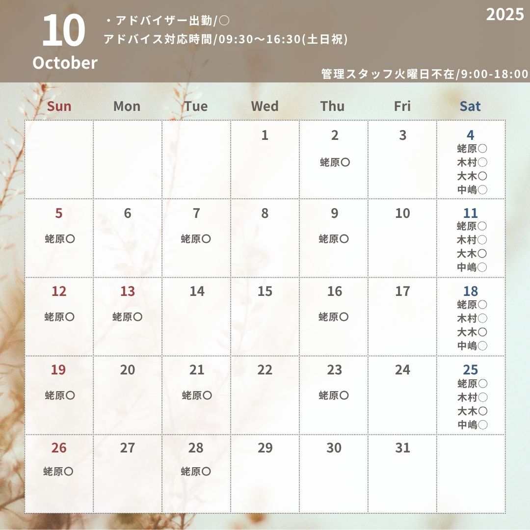 10月/アドバイザー出勤スケジュール